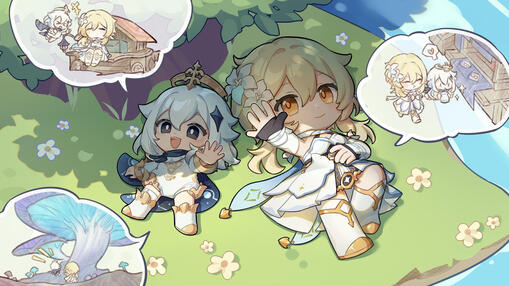lumine, aether, venti. childe, xiao, hu tao, zhongli, kazuha, ei, yoimiya, ganyu. yae mikokiana, fu hua, elysia, mei